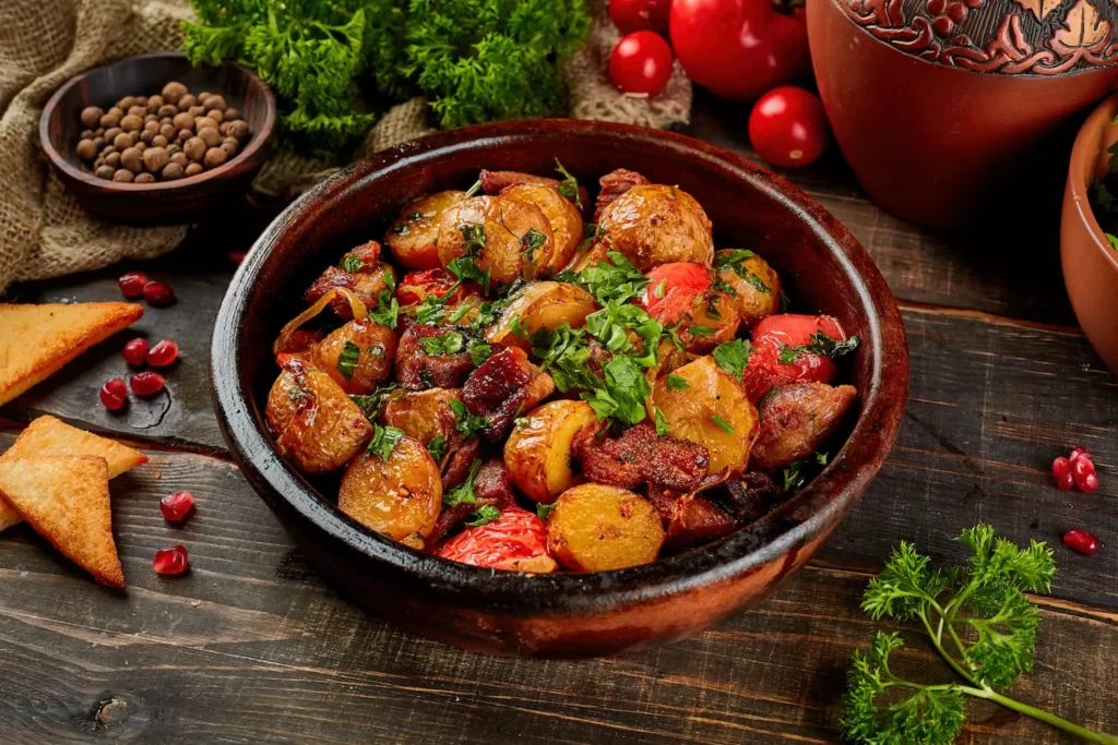 Asortiment de pastrama din muschiulet de porc, ceafa de porc, carnati speciali, mici, piept de pui, aripioare, cartofi aromatizati, perfect pentru o masă sănătoasă și sățioasă în familie sau cu prietenii. Disponibil în porții de 2000g la prețul de 299 RON.