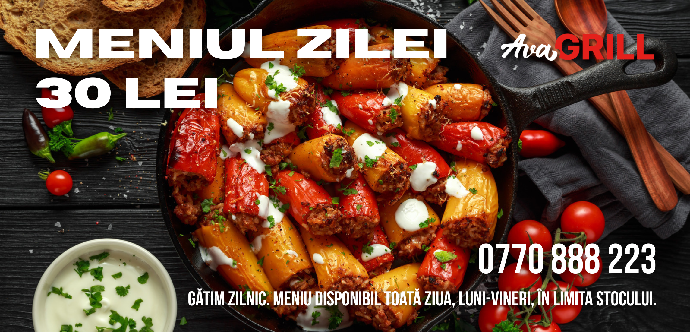 Descoperă oferta noastră zilnică, cu ciorbă sau supe proaspăt făcute, fel principal gustos, salată revigorantă și chifle pufoase. O masă completă la AVA Grill.
