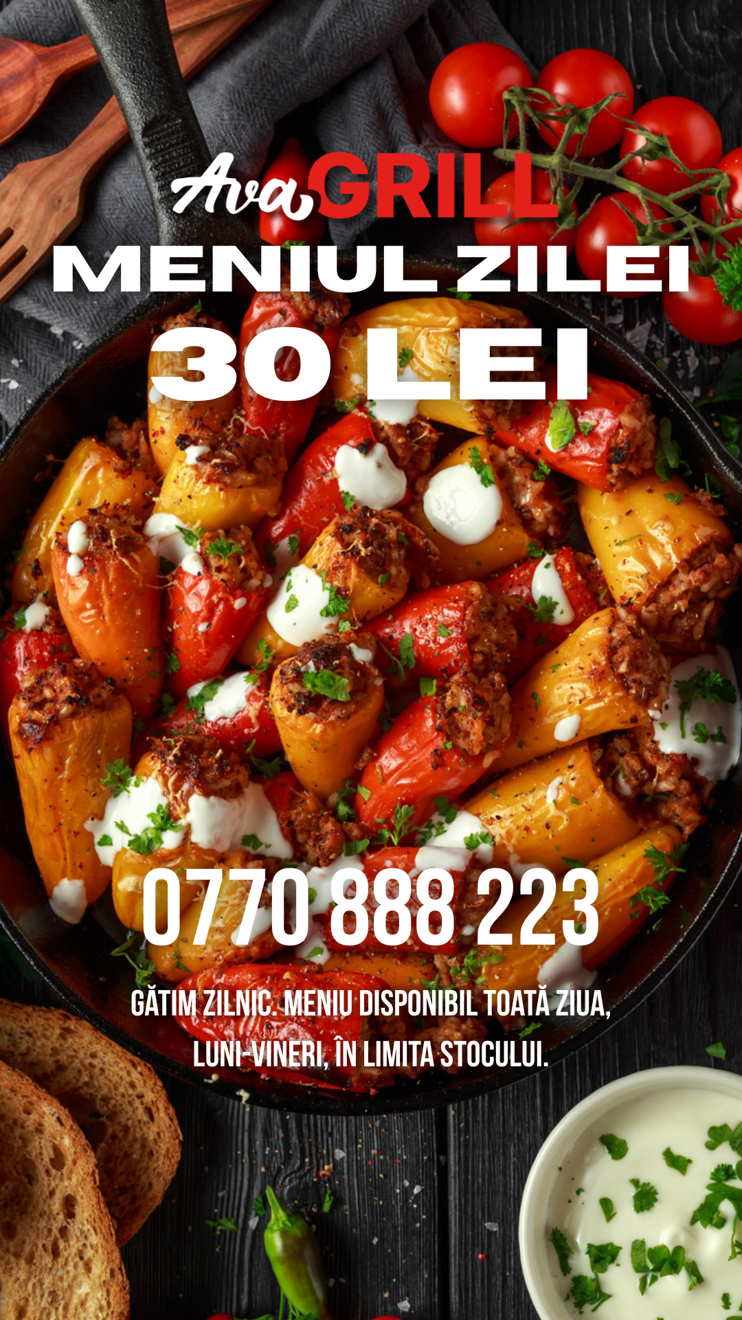 Mancam aproape zilnic de la Ava Grill si mereu produsele sunt de calitate si la aceleasi standarde. Meniul zilei este delicios si el si corbita este foaaarte buna! Portiile fiind super echilibrate si suficiente. Proprietarii sunt faini si ei, am avut ocazia sa ii cunoastem si sunt mega implicati. Felicitari, Ava Grill! <3